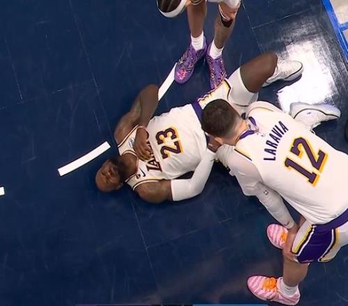 詹姆斯還一度被米德爾頓頂?shù)礁共课恢?,?dǎo)致他痛苦倒地,所幸并無大礙,畢竟湖人已經(jīng)“傷不起”。