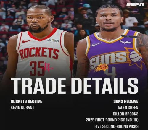 去年夏天休賽期,火箭送出杰倫格林+狄龍+25屆首輪第十號(hào)簽(馬盧阿奇)+5個(gè)次輪簽,從太陽(yáng)挖來(lái)杜蘭特。