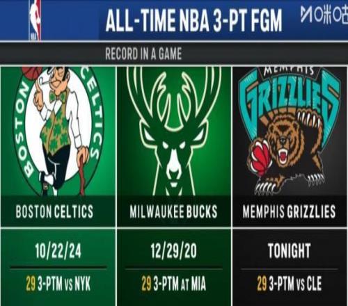 比肩綠軍雄鹿!灰熊轟29記三分追平NBA歷史紀錄
