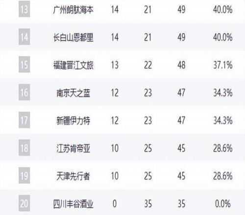 江蘇與天津落后5個(gè)勝場(chǎng),基本退出競(jìng)爭(zhēng);四川金強(qiáng)則遭遇恥辱性35連敗,賽季已無(wú)懸念,重建之路漫長(zhǎng)。