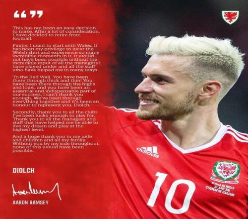 04月07報道 35歲威爾士中場拉姆塞在社媒自宣退役,結(jié)束19年職業(yè)生涯。