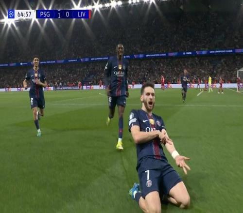 此役主場對陣利物浦,克瓦拉茨赫利亞在下半場打入一球,幫助巴黎取得2-0領先。
