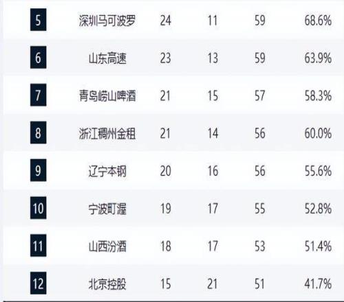 上海穩(wěn)居第一,4隊爭前4,山東又掉隊,遼寧排第9,前8名基本明朗