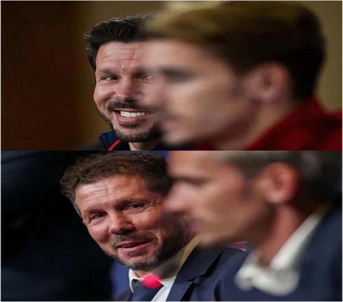 下圖是近日網(wǎng)上流傳甚廣的一張拼接圖,上面的圖片是2016年的發(fā)布會上45歲的西蒙尼望向25歲的格列茲曼,那時兩個人的臉上都還沒有歲月的痕跡。下圖則是前不久歐冠淘汰賽八強(qiáng)首回合馬競與巴薩的賽前發(fā)布會時西蒙尼真情流露,西蒙尼感謝了格列茲曼這十幾年的付出,并祝他一切順利時。
