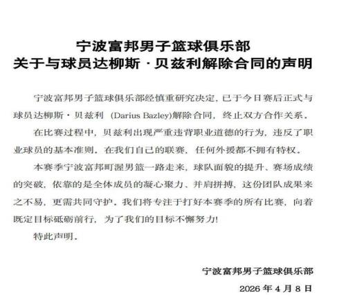賽后,寧波隊(duì)沒(méi)給任何喘息機(jī)會(huì),官宣:立即解約!