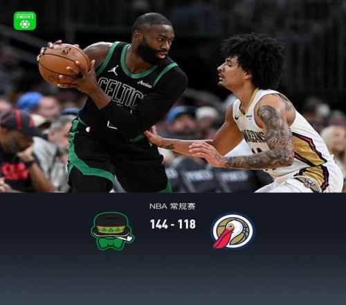 第四節(jié)凱爾特人加爾扎拿下9分,鵜鶘費(fèi)爾斯拿下14分,最終凱爾特人144-118戰(zhàn)勝鵜鶘