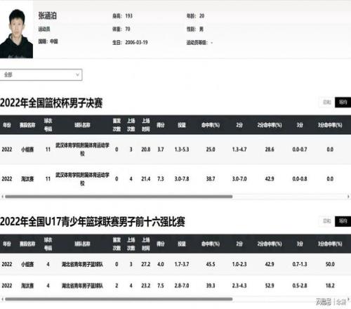 然而有網(wǎng)友質(zhì)疑,李沂澤疑似改年齡、改名參賽!因?yàn)樗驮?jīng)參加過2022年U17全國賽的張涵泊長相極為相似,而公開資料顯示,張涵泊出生于2006年3月19日,湖北青年男籃、武漢體育學(xué)院附屬體校球員,2021-2022年U15/U17賽事參賽。