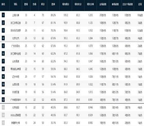 CBA排名大變天!上海獨(dú)占鰲頭,黑馬殺進(jìn)前四,山東被打回原形