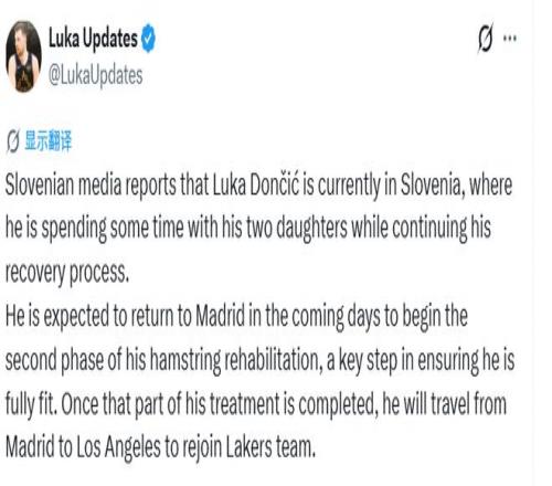 在斯洛文尼亞短暫休整后,東契奇很快將重返馬德里,進(jìn)行下一階段的治療。之后,他將從西班牙首都飛回洛杉磯,在那里與湖人會(huì)合。