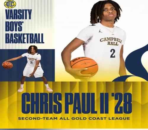 16歲的小克里斯-保羅今年在坎貝爾霍爾高中讀高二,也是校隊(duì)的風(fēng)云人物,預(yù)計(jì)2028年進(jìn)大學(xué)。