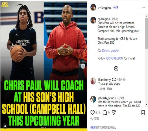 據(jù)美媒報(bào)道,克里斯-保羅將在下賽季到他兒子的高中坎貝爾霍爾學(xué)校擔(dān)任助理教練。