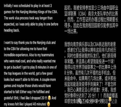 他也在社媒上發(fā)了長文回顧這次加盟