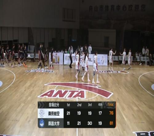 末節(jié)比賽,南昌大學(xué)雖然一直保持場上領(lǐng)先卻未能拉開分差,頑強(qiáng)的南京航空始終緊咬比分,不過在追到76-79后南京航空在最后的一分多鐘時間里沒有再得分,最終南昌大學(xué)81-76戰(zhàn)勝南京航空。
