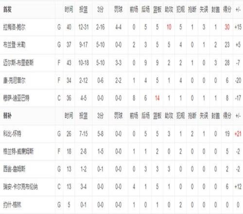 再看他的數(shù)據(jù),懷特26分鐘,15中7,三分8中5,拿到19分5籃板3助攻2搶斷,命中率46.7%,三分命中率62.5%,真實(shí)命中率63.3%,正負(fù)值+21,懷特是全隊(duì)得分第四的球員,也是全隊(duì)正負(fù)值最高的選手,更是全隊(duì)效率最高的選手。