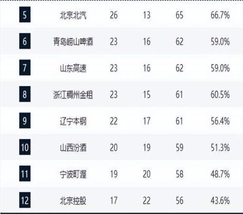 前5基本確定,廣東第4,北京第5,山東第7,遼寧緊咬第8,5隊出局