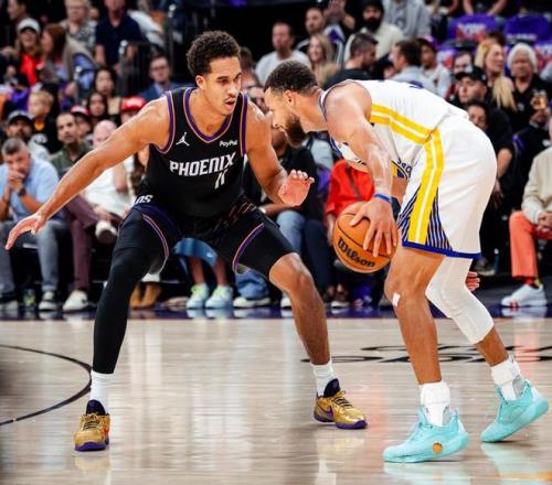 4月18日NBA附加賽繼續(xù)進行,隨著魔術(shù)大比分淘汰黃蜂,東部8強最終全部出爐,接下來要進行是本賽季最后一場附加賽,金州勇士客場挑戰(zhàn)菲尼克斯太陽隊,雙方爭奪西部第八最后一個附加賽名額!本場比賽雙方都排出了現(xiàn)有最強陣容,太陽這邊馬威缺陣不打,伊戈達羅頂?shù)?號位搭檔古德溫、杰倫·格林、布克、狄龍先發(fā),勇士這邊沿用上一場庫里、波杰姆斯基、桑托斯、追夢、波爾津吉斯的先發(fā)五人組!本場比賽對于勇士來說就像需要效仿開拓者一樣鎖死布克,不能讓其舒服的找到得分節(jié)奏,同時由于馬威不打需要利用好波爾津吉斯+追夢+霍福德的內(nèi)線優(yōu)勢,庫里外線需要打出匹配杰倫格林+布克組合的火力輸出!太陽這邊則需要做好防守,避免讓勇士舒服的進入熟悉的傳切節(jié)奏,當(dāng)然狄龍+古德溫等防守悍將能給庫里制造多少麻煩至關(guān)重要,話不多說一起進入比賽!