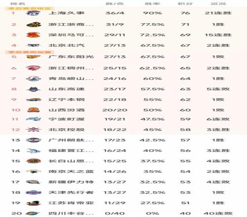 CBA最新積分榜
