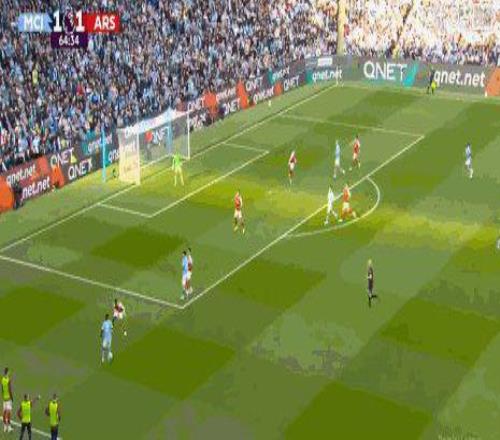 精彩進(jìn)球:第65分鐘,奧賴?yán)麉^(qū)左側(cè)橫傳,哈蘭德擺脫加布里埃爾掃射破門,曼城2比1阿森納