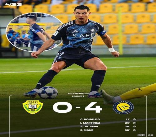 亞冠二級(jí)聯(lián)賽1/4決賽,利雅得勝利客場(chǎng)4-0迪拜祈禱,晉級(jí)四強(qiáng)。C羅推射破門,打入職業(yè)生涯第969球,菲利克斯雙響,伊尼戈-馬丁內(nèi)斯、阿姆里破門,馬內(nèi)錦上添花。