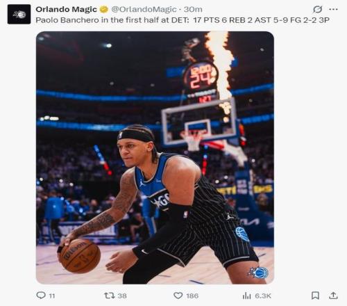 先看魔術這邊,核心球員集體在線,多點開花讓活塞防不勝防。老大班凱羅當之無愧扛起球隊,全場15投8中,三分4中2,罰球7中5,狂砍全隊最高23分,同時搶下9個籃板,送出4次助攻,攻防一體,既能穩(wěn)定得分,又能串聯(lián)隊友,領袖氣質(zhì)拉滿。
