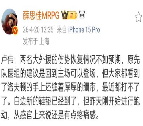 回到主場之后,上海男籃會(huì)迎戰(zhàn)遼寧男籃,這也是上海男籃季后賽第一輪的一次潛在的預(yù)演,然而盧偉卻表示洛夫頓的情況有些嚴(yán)重,目前還無法參加正常訓(xùn)練,最近也都不能打比賽。由于常規(guī)賽將會(huì)在本周結(jié)束,所以洛夫頓確定常規(guī)賽報(bào)銷。
