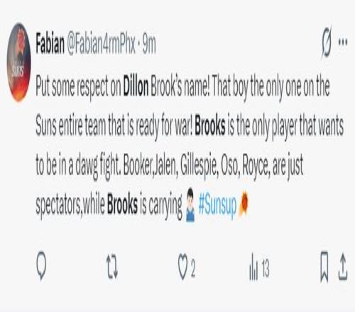 太陽(yáng)球迷:多給狄龍一點(diǎn)尊重吧,這個(gè)大男孩是太陽(yáng)唯一想戰(zhàn)斗的球員,布克、格林、吉萊斯皮等人都是旁觀者,他們需要狄龍去帶領(lǐng)。