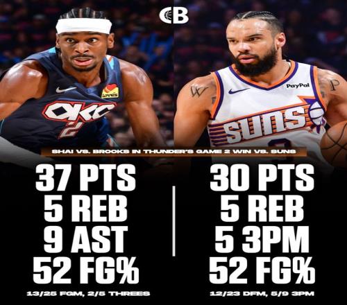 狄龍整個(gè)下半場(chǎng)拿到23分,全場(chǎng)比賽23中12,三分9中5,僅1罰球拿到30分6籃板1助攻。SGA全場(chǎng)比賽25中13,罰球7中7拿到37分9助攻5籃板。