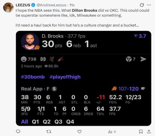 狄龍30+6登全美熱搜!美媒調(diào)侃他超厭惡SGA被贊如超巨該獲尊重