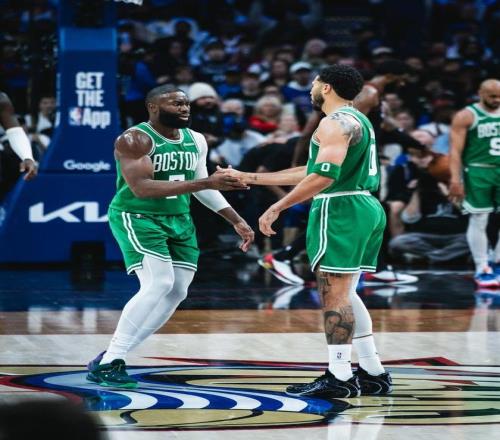 塔圖姆與布朗在場上慶祝