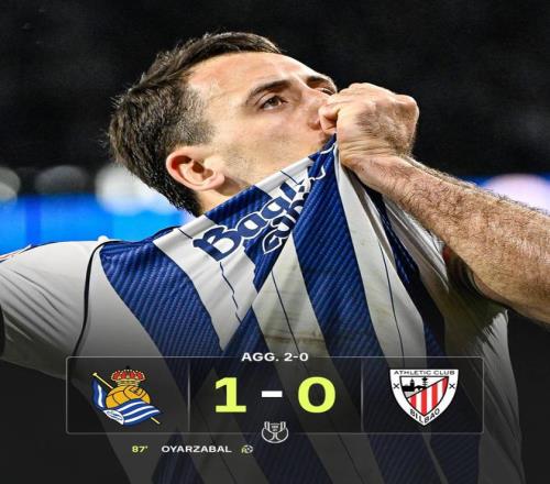反觀皇家社會,1球領(lǐng)先打得很有耐心,第87分鐘,奧亞薩瓦爾在禁區(qū)內(nèi)制造點球機會,并親自主罰命中,皇家社會1-0領(lǐng)先,總比分2-0,最終比分也定格在此,皇家社會完成雙殺,強勢挺進決賽。