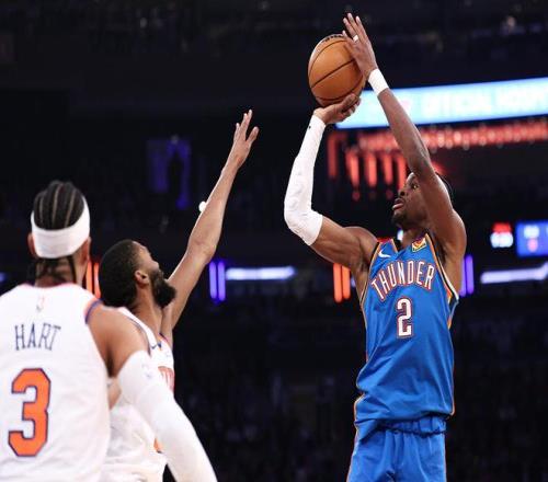 末節(jié)最后時(shí)刻,他面對阿奴諾比后撤步三分命中殺死比賽。此役,亞歷山大出戰(zhàn)35分鐘,投籃16中9,三分1中1,罰球7中7,砍下26分3籃板8助攻。