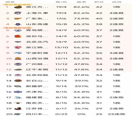 CBA最新積分榜