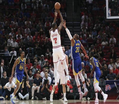 加時賽,火箭進(jìn)攻又打死了,波杰姆斯基連下5分勇士占據(jù)主動,阿門搶斷反擊兩罰一中,搶到前場籃板,杜蘭特三分命中,但勇士霍福德籃下強(qiáng)吃阿門得手。杜蘭特造三分犯規(guī)三罰兩中,梅爾頓補(bǔ)籃完成準(zhǔn)絕殺。追夢點(diǎn)球送杜蘭特罰球,杜蘭特又是兩罰一中葬送球隊。