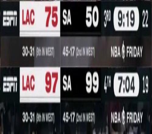 快船本場領(lǐng)先25分被馬刺逆轉(zhuǎn),創(chuàng)造隊史最大被逆轉(zhuǎn)分差。