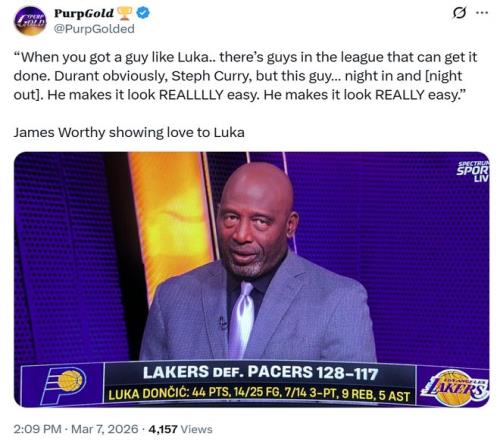 正如賽后湖人名宿沃西對于東契奇的評價,聯(lián)盟中也有幾位球員能夠做到這一點,例如杜蘭特和庫里,但東契奇出色的點在于他每個夜晚都能在進攻端做到這一點,并且看起來輕輕松松。