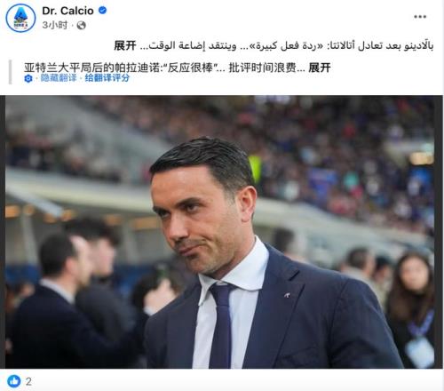 攀談起來(lái),我才知道,我身邊的這位同行果然是自媒體人,他來(lái)自伊拉克,在Facebook上運(yùn)營(yíng)一個(gè)名為“Dr.Calcio”的個(gè)人頻道。他的個(gè)人頻道報(bào)道的都是意甲相關(guān)內(nèi)容,平臺(tái)認(rèn)證是“運(yùn)動(dòng)博主”,簡(jiǎn)介則寫(xiě)著:“一個(gè)關(guān)于意大利足球的體育主頁(yè),涵蓋了所有與意大利足球相關(guān)的內(nèi)容。”