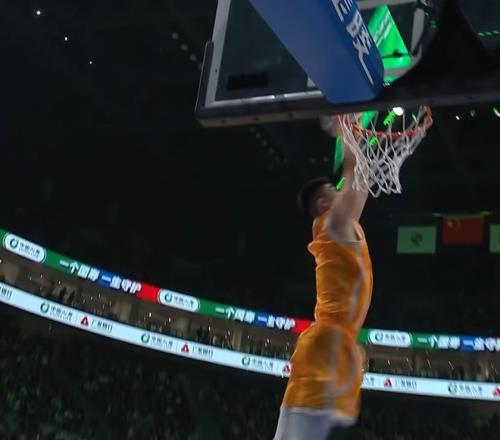 俞澤辰找了趙繼偉進(jìn)行配合,趙繼偉拋籃板側(cè)邊,接上轉(zhuǎn)體反扣,獲得50分,延續(xù)了懸念。