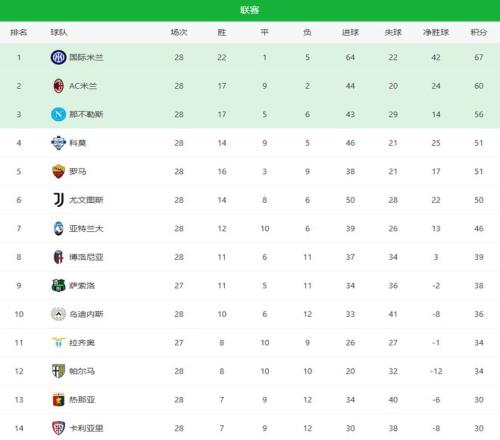 隨著羅馬12爆冷+米蘭10國(guó)米!意甲最新積分榜:36名差6分