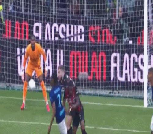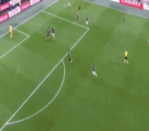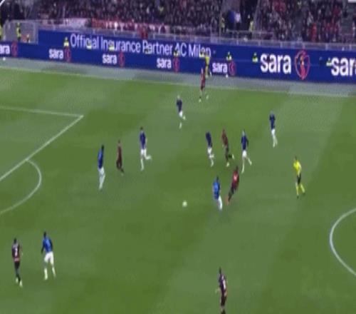 回過頭來,AC米蘭踢出犀利反擊,福法納中路送出精妙直塞,埃斯圖皮尼安左路插上,小角度爆射破門,紅黑軍團打破僵局,1-0!