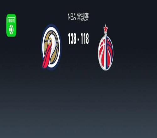 第四節(jié)鵜鶘薩迪克-貝拿下8分,奇才威爾-萊利拿下7分,最終鵜鶘138-118戰(zhàn)勝奇才