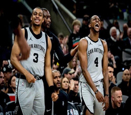 馬刺隊,卡斯?fàn)?3中7,三分球4中3砍下了23分3板5助,沖擊力十足。??怂?5中9轟下了了20分2板10助,兼顧了得分與串聯(lián)球隊。凱爾登約翰遜13中8,三分球7中4得到了20分1板2助;哈珀12中8,三分球4中3砍下了19分2板6助,兩人從替補席爆發(fā)。尚帕尼7中4得到11分5板4助2斷、布萊恩特7分3板、瓦塞爾6中0,罰球6中5得到5分5板3助、麥克勞林3分1板1助、沃特斯3分2助、奧利尼克3分1助、科內(nèi)特2分1板3助、比永博1板。