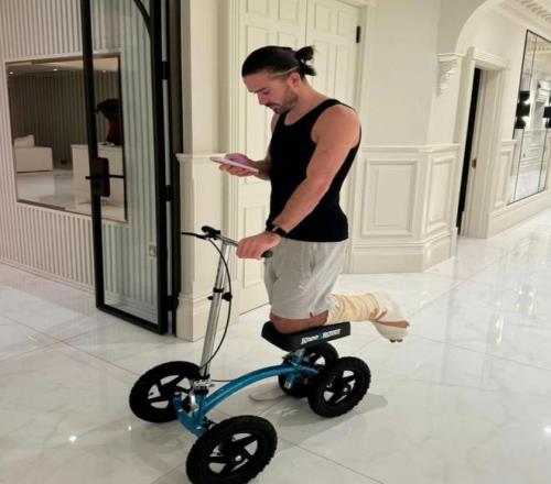他發(fā)布的這組照片里,有依靠膝部助行器出行的畫(huà)面,也有在健身房進(jìn)行康復(fù)訓(xùn)練的身影,一張照片中他披散著長(zhǎng)發(fā)自拍,還有一張則是他在桑拿房放松的模樣。