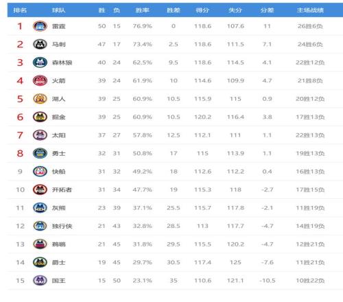 今日比賽后森林狼、火箭排名互換,湖人、掘金排名互換,其他西部球隊(duì)排名不變。