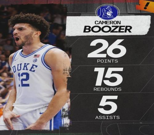 本賽季布澤爾為杜克出戰(zhàn)31場比賽,場均得到22.7分10.2籃板4.1助攻1.5搶斷0.5蓋帽2.2失誤,三項命中率:58.3%,40.7%,78%。場均得分排名NCAA第6,場均籃板第13。杜克大學(xué)場均凈勝對手20.4分,高居NCAA聯(lián)賽第一!