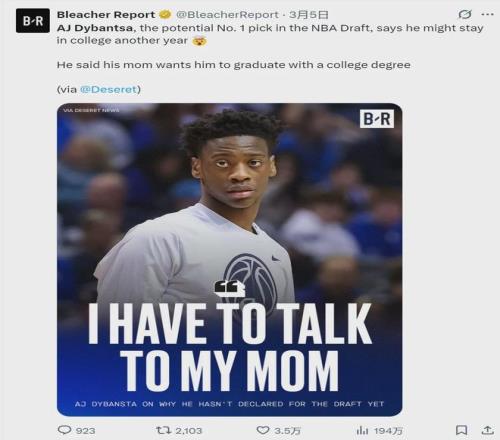 AJ-迪班薩說道:“今年我可能不會離開大學(xué),因為我媽媽希望我能拿到學(xué)位。她想讓我有個退路,我得先跟我媽聊一聊。”其實這些都是弗拉格玩剩下的:2025年2月,弗拉格表示想在杜克大學(xué)多打一年,2026年再參加NBA選秀。
