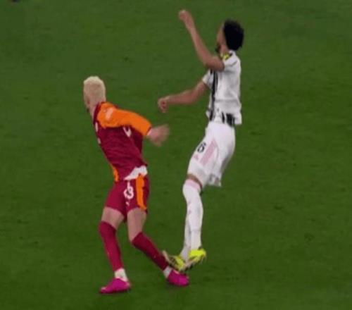 以尤文圖斯球員勞埃德-凱利在附加賽對陣加拉塔薩雷時的下場為例。他的犯規(guī)最初被出示第二張黃牌,后來升級為直接紅牌,因為這名后衛(wèi)的腳底(似乎是意外地)落在了巴里什-耶爾馬茲的小腿后部,這意味著他將因直接紅牌被禁賽兩場。歐足聯(lián)稱這是“明顯不公平的接觸……明顯危及對手安全”。