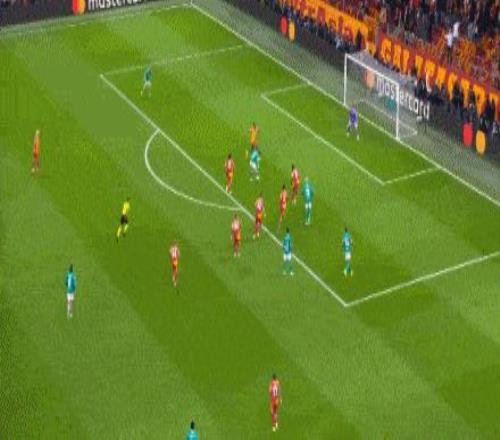 第7分鐘,薩拉開出左路角球至禁區(qū)內(nèi),后點奧斯梅恩頭球擺渡到門前,勒米納頭球攻門頂進,加拉塔薩雷1-0領先。