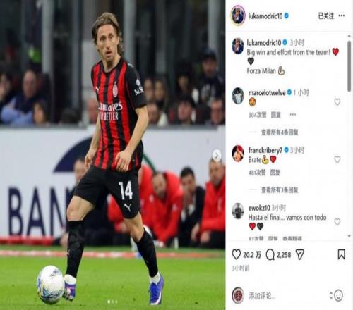 意甲第28輪米蘭德比,莫德里奇踢滿全場,幫助AC米蘭1-0擊敗國際米蘭。賽后他在社交媒體曬出比賽照片,并配文寫道:“重要的勝利,全隊表現(xiàn)都很出色!加油米蘭!”這位40歲老將的領(lǐng)袖氣質(zhì)和穩(wěn)定發(fā)揮是球隊取勝的關(guān)鍵因素之一。