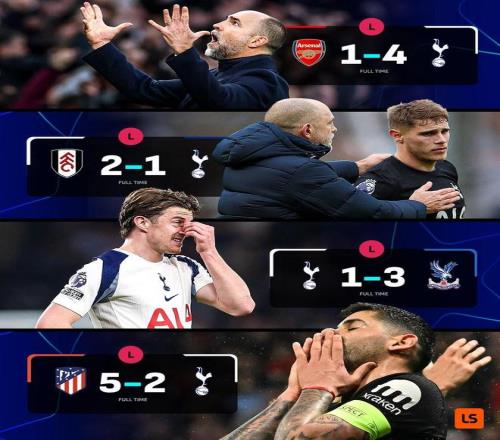 歐冠1/8決賽首回合,熱刺客場2-5不敵馬競,圖多爾成為熱刺隊史首位執(zhí)教球隊前四場全敗的主帥。