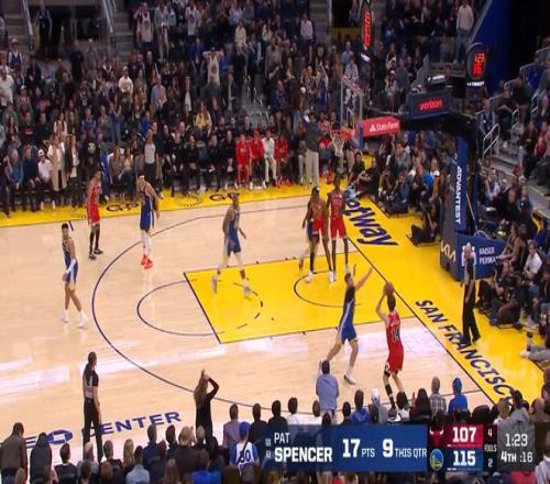常規(guī)賽,公??蛨?chǎng)130-124戰(zhàn)勝勇士。